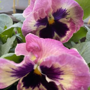 ✨カダンボニータモニター2024✨ 手前のお花は ビバラ・バイオレット💜 と判明! 植え付け時に蕾を全て取ってしまったのですが、右側はきっと‥ クイーン・イエロー・ビー💛 ではないかしら🤔 まずは一輪咲きました🥰