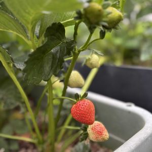 おはようございます☀ 今日も 庭パト日和♪(*゚▽゚*)*/ ①色付いて来ました🍓 ②③ 可愛くて‥💓 (3日前の撮影)