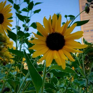 今日いちばんの美人さん はなやかなガーデニングショウ会場の裏でまだまだ元気なひまわりに会いました