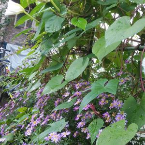 今朝の我が家のお花🌸 今年も沢山の(ノコンギク)が咲いてくれました🌸 ムラサキシキブやホウズキがお花を 引き立たせてくれています🌸