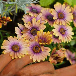 北海道南十勝にもお花の季節がやってきました。 ちょっといい感じの寄せ植えが出来たのでパシャリ。 オレンジのオステオステルマムを見つけたとき、ずっと使っていなかったあの鉢に!と。 午後から雨も降り出し、気温も低めですが……我慢しきれず植え込み。 十勝はこの時期、やたら乾燥して風が強かったり、急に冷え込んだりと、悩ましい所です。