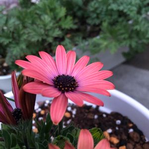 初お迎えの #オステオステルマム 上手く花芽がつかない‥ プレゼント品を返却してきて 単品植えにしてみました。 もう少し頑張って夏越ししてね