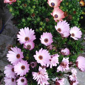 オステオステルマムっていうのであってるのでしょうか? ピンクでもない、オレンジでもない色。 満開!蕾もまだある( ◠‿◠ )