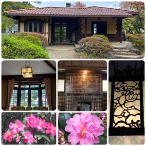 激動の世界情勢を前に 外客との「対話」に努めた渋沢栄一 旧渋沢庭園内 「晩香廬」 晩香廬内の照明、中央には鶴が描かれ、周りに貼られた貝からこぼれる光が淡く美しい。 「晩香廬」内の暖炉 飛鳥山に咲くサザンカ♡