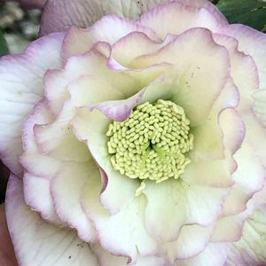 クリスマスローズ ダブル 中心から外側に黄緑色が広がってます。