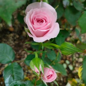 無知な私に適当に挿し木されて、適当に植え替えられて、適当に剪定されても咲いてくれる優秀なバラ💕 雨が☔嬉しそうに咲いてます🌹 名前はわからんけどキレイ✨