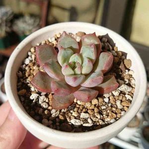 🏷ド真ん中の日 今日は、ウチの子 お一人様鉢のエケベリアで参加します 高い棚なので手を伸ばして撮影📸カメラ目線は、レインドロップさんだけか‥