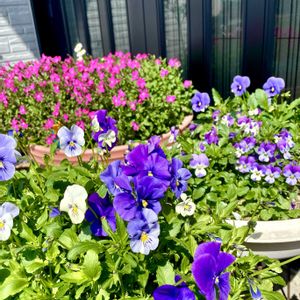 ちょっとカットしてこざっぱりしました🌱 ・ビオラ変わり咲き ももか おまつり ・白いパンジー