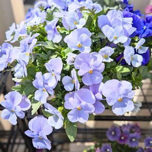 ヒラヒラな水色のビオラ💙✨ 2月23日のpicと比べて かなりモリモリとしてきました。 一緒に寄せ植えしている他のパンジーたちがちょっと狭そうにしています💦
