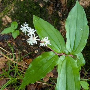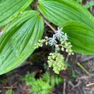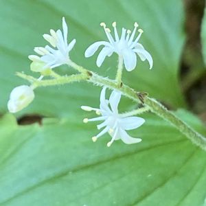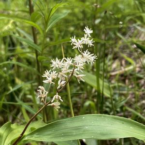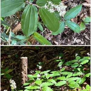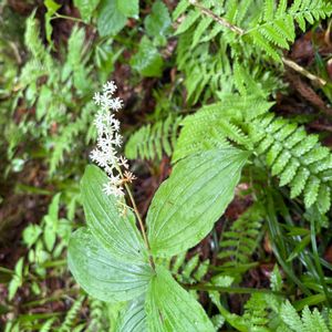 素敵に咲いてました♪ ユキザサ(雪笹) キジカクシ科 マイヅルソウ属 多年草 和名の由来は葉が笹の葉に似て、花が雪のように白く細かいことから。 北海道、本州、四国、九州に分布。 山地の林内に生育。 高さ20〜30cm。 葉葉長さ6〜15cm、卵状長楕円形、先が尖る。 円錐花序は長さ3から6cm、花が10〜25個ほどつく。 花被片は白色狭長楕円形。 雄しべは花被片より短い。花柱は長さ0.5〜1㎜。柱頭は丸くなるか3浅裂する。 果実は球形で5〜6㎜。熟す撮赤い。 花期5〜7月 5月18日撮影 甲子高原
