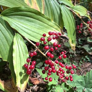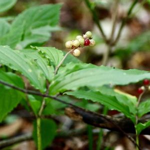 ユキザサ(雪笹) 別名 アズキナ あずきに似ているから ①〜④ まん丸の果実は液果でみどり色から赤くなります。 2025.9.22