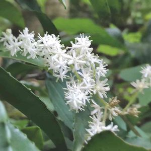 ツバキの木の下の半日陰に ユキザサが咲きました。 秋には真っ赤なツヤツヤの実が 生ります。 うっかり見過ごしてしまいそうなくらい ひっそりと咲いています。