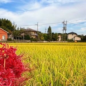 今日のお花*イネ 今年も美味しく新米をいただきマシタ😋🍚 ふる里の田んぼ、愛知県内の田んぼから🌾・:*+. 《スライドpic》 ①収穫間近の風景… ②田植え後… ③成長してきたよ… ④収穫まであと少し🌾… ⑤⬆️ふる里の田んぼ・収穫後の 「稲架(はさ)掛け」 ⬇️田んぼアート🦊 「ごんの秋まつり」