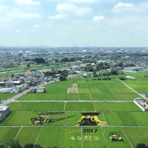展望台から見た田んぼアート、なかなか素晴らしかったです꒰*´∀`*꒱ 空気が澄んでいれば向こうに富士山も見えます。 今日は見えませんでしたが٩꒰ ´ᆺ`꒱۶ でも心の目で見れば見えるはず ハッ‼︎・:*+.\(( °ω° ))/.:+ ↑気合いのかけ声