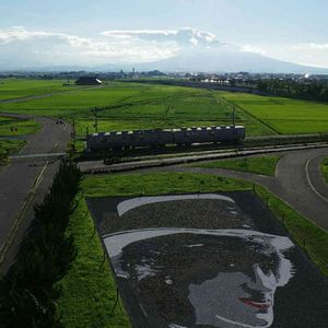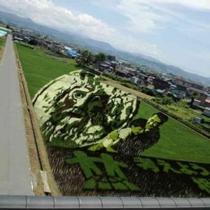 地元米沢の田んぼアートです🌱 直江兼続とかねたん🎶 今が見頃と言うので見て来たけどくっきりとアートになってました(*´∇`*) 5月に山形県特産米つや姫と色彩の異なる苗を植え付けはっきり出て来た様です。 良かったら見に来てくださーい👋