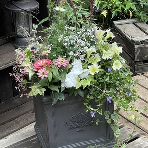 トレニアのギャザリング ブルーリバー アイスリバー ピンクリバー ラムレーズン 4種類のトレニアが こぼれるように咲いています♪ ギャザリングは 花たちと戯れる幸せな時間🧚 ギャザリングレッスンにご興味のある方は是非Instagramもご覧ください。 https://www.instagram.com/hanamaison.fujiko