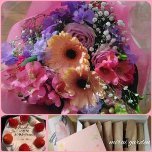 こんばんは🌙 コメ返出来てなくて…ごめんなさい🙏 毎月13日と14日は葉挿しの日です🤍 makimayちゃんとみらいのコラボでやってます😊 って、picが葉挿しやないやーん🤣🤣 日中に葉挿しちゃん撮って無くて( ̄▽ ̄;) 明日は葉挿しちゃんアップします🌱 先週、仕事を辞めたとき💐頂いたお花を記念にアップさせて下さい🙏 右下はプレゼント🎁とスィーツ🥮も頂きました😊 左下はパパからはメッセージ入りのケーキ🎂 私が大好きな🎂お店で買ってきてくれた(*ᴗˬᴗ) 💐🎁🥮も想像してなかったから、手渡された時はありがたくて涙が溢れて止まらなかった( ᵒ̴̶̷̥́ࡇᵒ̴̶̷̣̥̀ ) ありがとうございました(⁎ᴗ͈ˬᴗ͈⁎) これから仕事に費やしていた時間は、家族のために充てることになりますが、どんなことでも楽しめるように、前を向いて行こうと思います✨
