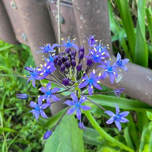 シラー・ペルビアナ 紫っぽいブルーの小花と黄色が星みたいでかわいい✨ いつもの散歩道 ぽつんと一株だけ咲いてました。 はじめて見た気がするなー。名前知らなかった!