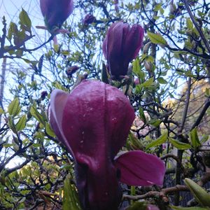 シモクレンがまた咲き出しました💜 葉っぱがモリモリなので目立ちません͛.*🍃😆