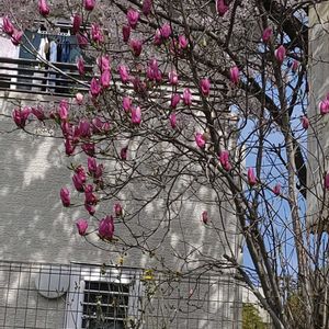 今日のお花 ⁑ モクレン(木蓮) シモクレン(紫木蓮)×4 💜 ハクモクレン(白木蓮) 🤍 ⚫︎⚪︎⚪︎⚪︎⚪︎