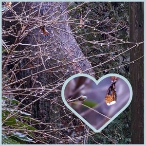 アプローチの一週間前には未だ有るか無きかだった白花鶯神楽の冬芽が 素敵な黄緑色で膨らんで来ました 🏷春近し …初めて参加させて頂きます
