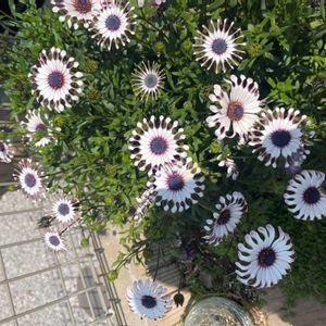 眠いのに眠れない…🥱 爺が寝ない…せん妄発症!! 白い壁見てるとおかしくなるのか… 壁掛けの時計や絵画に小さな湿度計がスルスル落下移動してるそうな…ソファーで横たわる私の上に「落ちる!ホラ落ちる…」とうるさい😱 ので… 庭で賑わしい娘ご紹介 オステオスペルマム 3Dさん スプーン咲きが可愛い🤗