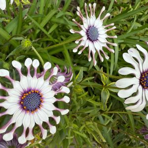 オステオスペルマム スプーン咲きの紫😊 サニーフィリップスも植えてたのに咲いてない。でもって、画像はないですがサニーフィリップスの色合いでノーマル咲きのオステオスペルマムが咲いてたから、スプーンからノーマルに変わったのかな?