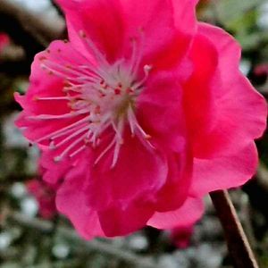 母の庭に毎年花桃がキレイに咲いています 忘れていて夕方慌ててパチリ🤳 葉っぱをよけて必死で撮りました🙋