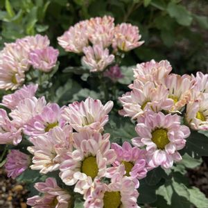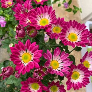 ポットマム シャトー風車 一昨年隅っこに植え、昨年切らないままおいてたらグングン背丈が伸びて… 蕾が先の方でいっぱい付いてます💕 名前を探したのですがこれかな? 記録として残します。