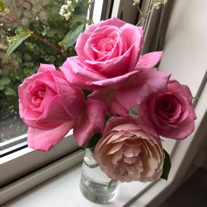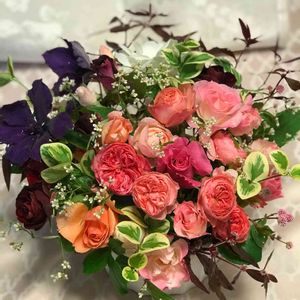 金曜ローズショー に参加させていただきます。 庭のバラでアレンジを作りました。 クレマチスはホノラの3番花です。 バラは🌹ピンク系のをたくさん挿しました。レオナルドダヴィンチ、マッカートニーローズ、マチルダ、せん、バイランド、アライブ、プチトリアノン、バーガンディアイスバーグ、クレアオースチン、フレグラントアプリコット、ラヴァグルート、アイスバーグ ヒメツルソバ、ペルシカリアレッドドラゴン、他。 マイガーデン