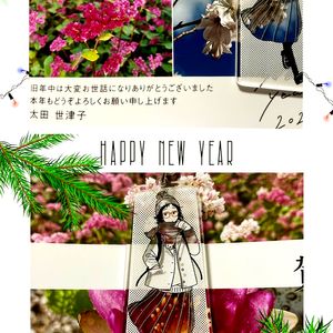あけましておめでとうございますꔛ♡ 私の年賀状の上にかえでちゃん登場してもらいました⸝⸝˃ ᵕ ˂⸝⸝💖 紅白見てました 色とりどりのお花素敵でしたね⸝⸝˃ ᵕ ˂⸝⸝💖
