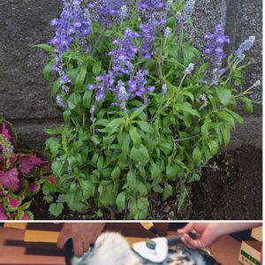 おはようございます✋😊🐓⏰ ⬆️昨日picのコリウスサンの隣りのブルー💙サルビアサンです😊 10年前にお迎えしてから、植えっぱなしで放ったらかしの子なのです😉 今が1番いい感じなのでパシャ📷✨ ⬇️昨夜息子がネットで購入したブラシで、翔平🐱にブラッシングしていました😊 とても気持ちいいみたいで、大の字になり脱力して身を任せていました😄 いつもは100均のブラシでサクラ🐱は喜ぶのですが、翔平🐱はすぐに逃げてしまうのでブラッシングが嫌なのかと思っていました😟 こんな風にお腹を見せて、仰向けにゴロンとしているのは初めて見ました😊