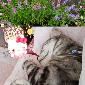 ⬆️西側の花壇のアンゲロニアサンです☺️ 凄いと思ったピンクサンは、1株で花茎がおよそ100本位ありました😃⤴️ 右隣のパープルサンは、一度植え替えたせいか普通サイズ(花茎30本位)なのです☺️ アンゲロニアサンはまだまだ元気なので、もう暫く頑張ってもらいます✌️ ⬇️【翔タイム✌️☺️】 三日前の事、 私がベッド🛌で横を向いてスマホ📱いじっていたら、翔平🐱が背中にやって来て添い寝してくれました😃⤴️ サクラ🐱かな?と思い写真📸を撮ったら翔平🐱でした😃⤴️ 嬉しくて何枚も写真📸撮っていたら、起きて行ってしまいました😢 背中側の写真📸撮るのは難しくて、私の背中は少ししか写ってなくてわかりづらくて🙏💦💦