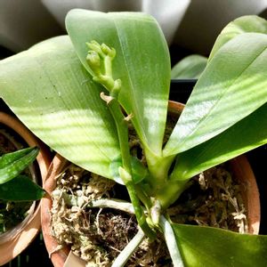 今日のお花、コチョウラン。 嬉しくて連投だけど延々やってしまいそうだからこれで止めときます😅 原種のアンボイネンシスちゃん🏵 Phalaenopsis amboinensis (‘Nicole’x self) これも去年の夏の池袋サンシャインラン展でやまはる園芸のkenjiさんに選んでいただいて可愛がってる子です。 うちの環境に馴染んだのか葉も元気に展開して根っこもボーボー。 元々一本あった花芽も健在で蕾が膨らみ、新たに出現した花茎2本も順調に蕾になっています😍 あと少しで黄色い地に朱色の虎柄のお花が咲くでしょう。可愛いんだよ! 多様な交配種も大好きですが、可憐で特徴のある原種もとっても大好きです。 これと似ているヒエログラフィカも欲しいんだけど、高いのよね〜。でもいつかゲットしたい。 植欲の冬✌️
