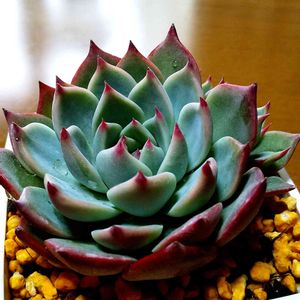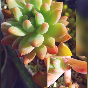 室内組🌿 微妙な色が美しい エケベリア デコラ 今黄色いカランコエは、低温だと白く、高温だとオレンジ色に💛 不思議ちゃん😘