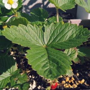 三年前に育てて、放任していたイチゴを植え替えてあげていたら、小さな花と赤いイチゴ🍓を朝から、みつけました。😄