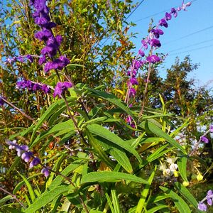 庭のふうせんとうわたとアメジストセージが高いところで、競い合ってます。😁