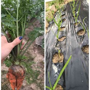 収穫したら⁉️ でこぼこニンジン🥕3兄弟🤣 ちゃんと耕さなかったからでしょうね〜窮屈でごめんね🙏 直径は7センチ位あります。料理には、切り易そうですが(^_^*)