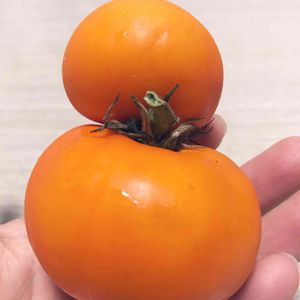 🍅トマト🍅 乗っけてるんじゃなくて 仲良く くっついてる双子ちゃん🥰🍅 この桃太郎ゴールドも 畑はとうとう 終わりになりました💦 おいしかったです😋 おのたんさんからいただいた苗。 苗が良かったんだなぁ❣️ おのたんさん ありがとう〜〜💓💓💓 .