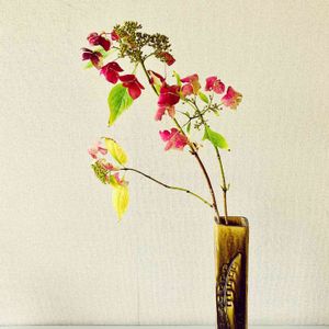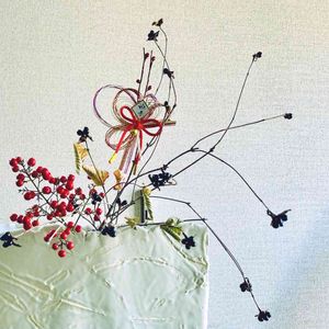 ヤマブキの黒い実を入れてた 花瓶に南天を足しました❤️🖤