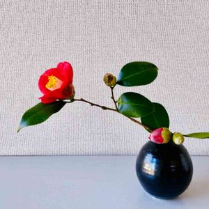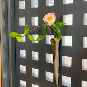 椿を掛け花入れへ
