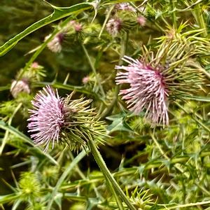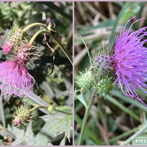 そしてまた見分けのつかない アザミ💦 これはタイアザミ(トネアザミ)かな〜?? 2枚目は… ハチオウジアザミ。 ?? って思い切り固有名詞付いてるやん… 何なら「多様性センターアザミ」とかありそう😅