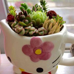 koumeちゃんからセンペルちゃんもらったょ〜〜♡( ᵕ̤ૢᴗᵕ̤ૢ )♡ 真ん中ね❣️❣️キティちゃんのカップにINして、周りをセダムちゃんで囲みました😆✨✨ 色々もらぃ、koumeちゃんありがとぅ💕