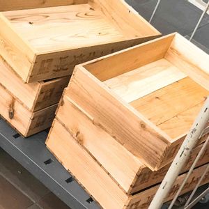 ご自由にお持ち下さいの木箱が 私を誘惑する_(:3」z)_ もう3つを植物棚に加工して 更に貰った3つは無加工で積んでるのに… 家に倉庫とかあったら もらって帰るんだけどな