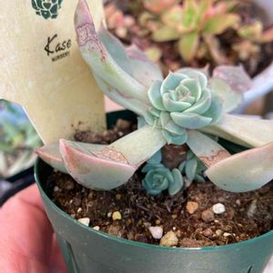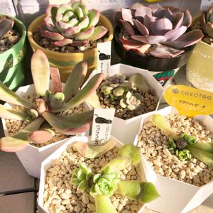 こんにちは♡ みらいさんの🏷胴切りの日に ↖️調子崩したり徒長してた子を先日カットしたので参加させて下さいね♪ 根っこ出た子は土に♫ 他のエケベリアさん達は 🏷ド真ん中の日で参加で〜す🤗 真ん中レッドこころ ちょっと茎立ちしてます(๑˃̵ᴗ˂̵) ↗️miyaさん苗のエンシノ×ラウレンシス 夏のダメージから少し復活してきました 大好きな交配種❤️ 下二つは優木さんの苗 ↖️沙羅姫牡丹×スノーキャッスル ↗️クスピダータメンチャカ×Yecora どっちも中心からしまってきてる感じする〜💕