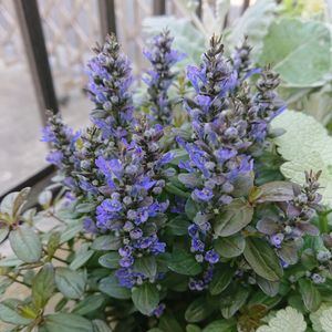 【アジュガ】 寄せ植えのアジュガが咲いたよ💙 思ったより綺麗な青色です💙 アジュガに太陽浴びせたくて、ダスティーミラーとラミウムをカット✂️ 花が咲く前は地味な葉っぱだけど、お花はほんとに綺麗だな~🤩