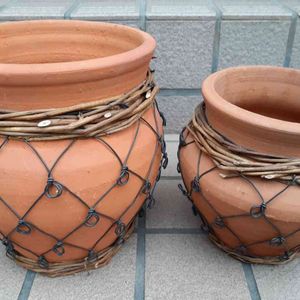 近所の花屋さんで素焼きの鉢を購入しました。 私がいつも行く花屋さんやホームセンターでは見たことなくて一目惚れ😍 最初は外に並べてあった小さい方を買う予定でしたが、お店に入るともう1つ大きいのが❗ いつも行く花屋さんで気に入った鉢を見つけたら買っておいた方が良いと言ってたのを思いだし大人買い😁 何植えよかな~♪