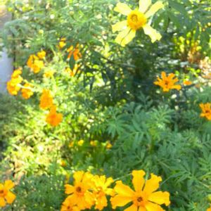 今日のお花のマリーゴールド(巨大)🌱 これも去年のpicです。先のpicとは花びらが違うのでよかったら見比べて見てください(^-^) 木のような枝が地を這い、そこからドンドン枝が立ち、3本なのに一面マリーゴールドだらけになりました。 懐かしいわ(*´-`) 今年は種を撒き忘れてしまいました💦 こぼれ種では咲かないのかな?