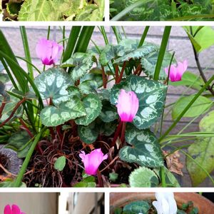 今日のお花シクラメン🥀 上左端は3年以上前から鉢に放置 それでも咲いてくれる優れ物✨ 縮れた花弁のオリガミも8月から咲いてるけど冬より花が小さい😅 液肥あげないとね💦 右および下のは10月加入の新メンバー 先輩のガーデンさん見習って 強く美しく手間なしでお願いします🙏