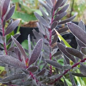 リューカデンドロン デュリフ しっかりした葉が赤から黒へ変化してバーガンディカラーと言われかなりの個性派